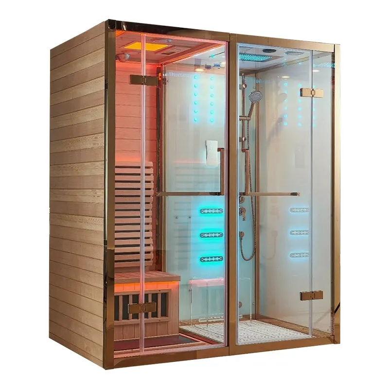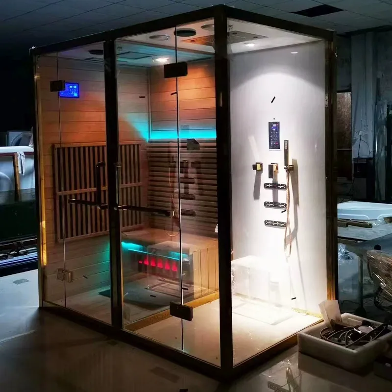 Nói lời tạm biệt với trải nghiệm phòng tắm đơn. Phòng tích hợp xông hơi khô và ướt đa chức năng này kết hợp các chức năng của phòng xông hơi khô, xông ướt, tắm vòi sen và giải trí thành một. Với điều khiển thông minh, higvật liệu chất lượng cao và thiết kế nhân văn, nó tạo ra một phòng tắm riêng và không gian giải trí.